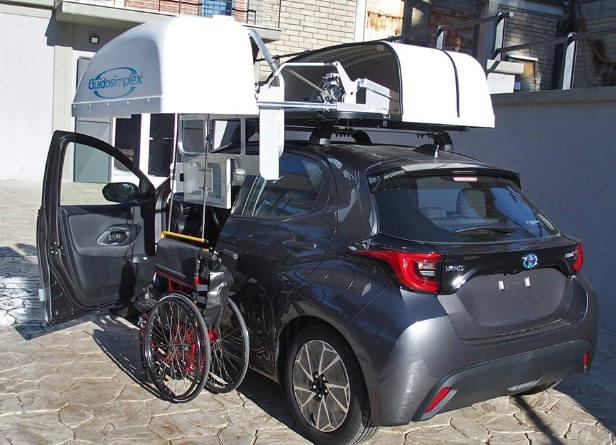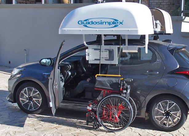 Aquest carregador de cadira de rodes es fixa en el sostre de l'automòbil mitjançant els suports adequats, i li permet col·locar la mateixa en una estructura especial que la transportarà sense danys i la protegirà del mal temps a través d'una coberta d'ABS resistent. Aquest carregador, es pot pintar sota comanda del color de l'automòbil.